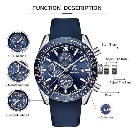 Sản phẩm BENYAR Mens Watches Quartz Movement Chronograph Leather Strap Fashion Business Sport Design 30M Waterproof Scratch Resistant Elegant Gifts for Men đang được bán với giá ưu đãi là $43.5891 tại nước Mỹ.