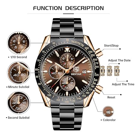 Thương hiệu BY BENYAR là cái tên nổi tiếng được rất nhiều khách hàng trên thế giới chọn lựa. Với kiểu dáng đẹp mắt, sang trọng, sản phẩm BENYAR Mens Watches Quartz Movement Chronograph Leather Strap Fashion Business Sport Design 30M Waterproof Scratch Resistant Elegant Gifts for Men là sự lựa chọn hoàn hảo nếu bạn đang tìm mua một món cho riêng mình.