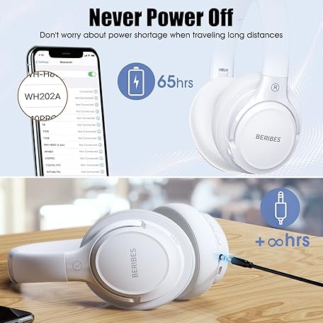 Thông tin sản phẩm BERIBES Bluetooth Headphones Over Ear, 65H Playtime and 6 EQ Music Modes Wireless Headphones with Microphone, HiFi Stereo Foldable Lightweight Headsets, Deep Bass for Home Office Cellphone PC Ect.