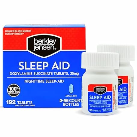Thông tin sản phẩm berkley jensen Sleep Aid (192 Tablets) - Doxylamine Succinate 25 mg Nighttime Sleeping Pills, Non Habit-Forming, Easy to Swallow Sleep-Aid
