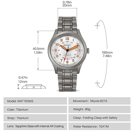 Sản phẩm BERNY Automatic Titanium Watch for Men 10ATM Waterproof Men's Field Watch Super Luminous Male Analog Mechanical Military Wrist Watch Full Titanium AR Sapphire Crystal Date Calender Birthday Present đang được bán với giá ưu đãi là $141.6891 tại nước Mỹ.