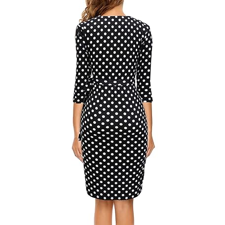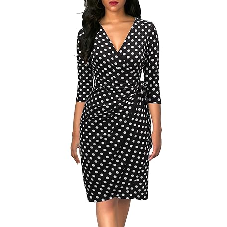 • Berydress Women's Classic 3/4 Sleeve V Neck Sheath Casual Party Work Faux Black Wrap Dress