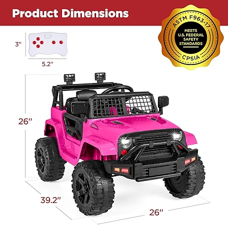 Thông tin sản phẩm Best Choice Products 12V Kids Ride On Truck Car w/Parent Remote Control, Spring Suspension, LED Lights, AUX Port - Hot Pink