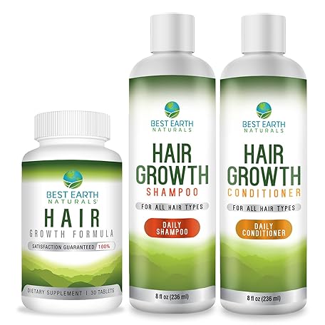 Best Earth Naturals Hair Growth Starter Set with Hair Growth Vitamins, Shampoo and Conditioner