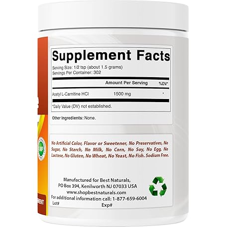 • Best Naturals Acetyl L-Carnitine Premium Powder -1 LB -Gluten Free.