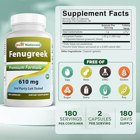 Sản phẩm Best Naturals Fenugreek Seed 610 mg 180 Capsules đang được bán với giá ưu đãi là $8.7091 tại nước Mỹ.