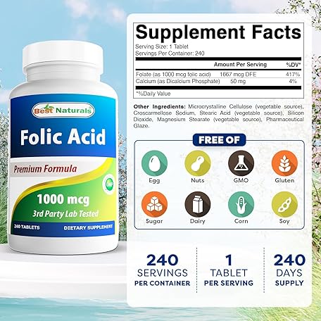 Sản phẩm Best Naturals Folic Acid 1000 mcg (Vitamin B9), 240 Tablets đang được bán với giá ưu đãi là $10.8891 tại nước Mỹ.