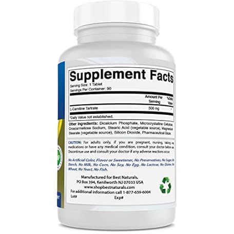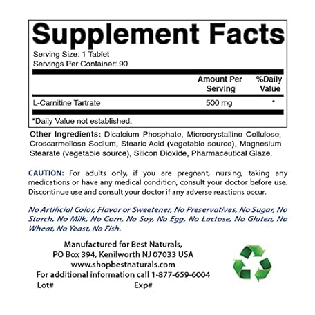 • Best Naturals L-Carnitine Tartrate 500 mg 90 Tablets (90 Count (Pack of 3))