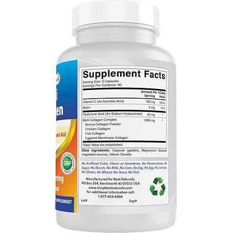 Thông tin sản phẩm Best Naturals Multi Collagen Pills 2000mg for Women & Men - Hydrolyzed Collagen Peptides Capsules for Hair Skin and Nails with Types I II III V X, Biotin, Hyaluronic Acid & Vitamin C