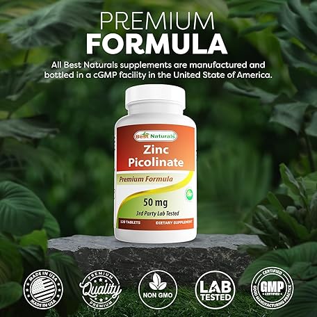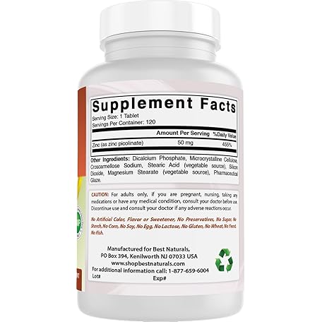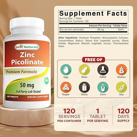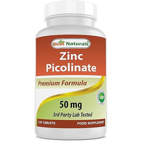 Best Naturals Zinc 50mg Supplements (as Zinc Picolinate) - Vitamins for Adults Immune Support - 120 Tablets (120 Count (Pack of 1))