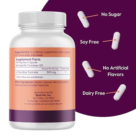 Sản phẩm BESTVITE L-Carnitine Tartrate 500mg per Capsule (240 Capsules)(120x2) - No Stearates - Non GMO - Gluten Free đang được bán với giá ưu đãi là $27.2391 tại nước Mỹ.