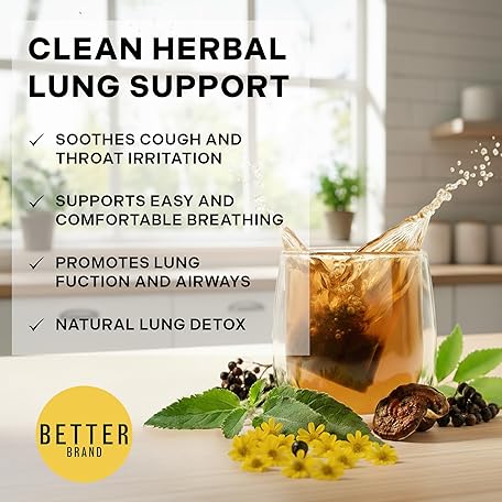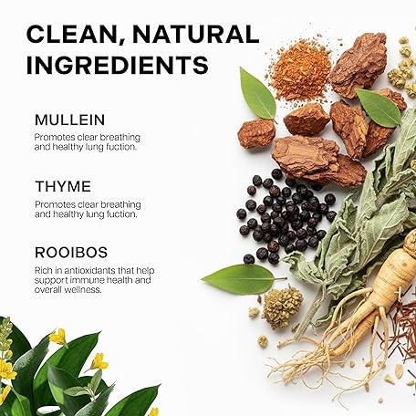 Thông tin sản phẩm Betterbrand Mullein Tea Bags for Lung Detox - Respiratory Support with Thyme, Elderberry, Ginseng, Ginger, Caffeine Free Herbal Blend - 15 Tea Bags (Pack of 1)