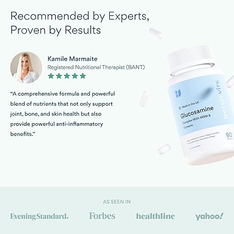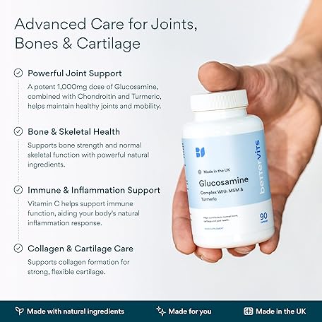 Thương hiệu Bettervits là cái tên nổi tiếng được rất nhiều khách hàng trên thế giới chọn lựa. Với kiểu dáng đẹp mắt, sang trọng, sản phẩm Bettervits Glucosamine Complex with MSM Сhondroitin and Turmeric | Joint Supplements for Women and Men with Vitamin C | Arthritis Support Supplement for Mobility & Flexibility - 90 Capsules là sự lựa chọn hoàn hảo nếu bạn đang tìm mua một món cho riêng mình.