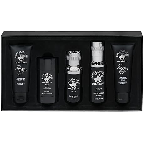 Beverly Hills Polo Club BHPC 5 Piece Men's Collection, includes Eau De Toliette, Deodorant, Body Spray, After Shave & Shower Gel (Sexy)