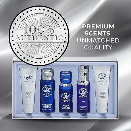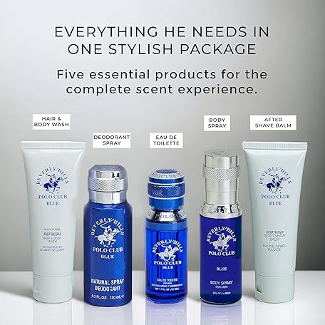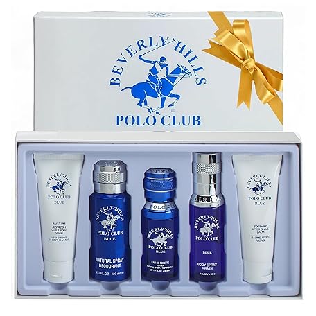 Beverly Hills Polo Club BHPC Cologne 5 Piece Gift Set for Men | Eau de Toillete, Deodorant, Shower Gel, Body Wash, Body Spray Fragrances (Blue)