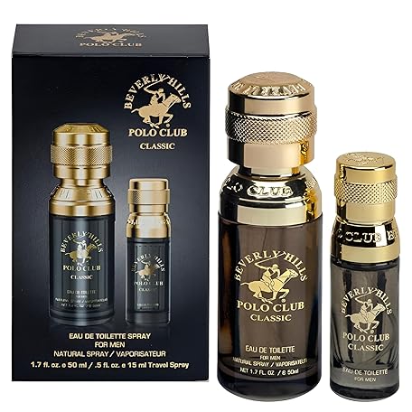 Beverly Hills Polo Club Men's Classic Eau De Toilette Bonus Pack - 1.7 oz EDT + Travel 0.5 oz Cologne Spray for Him - Long Lasting, Authentic Scent