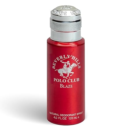 Beverly Hills Polo Club Natural Whole Body Deodorant for Men Spray - Fresh and Luxury French Cologne Scent - Sophisticated Men's Gift for Odor Protection & Confidence, 4oz (Blaze)