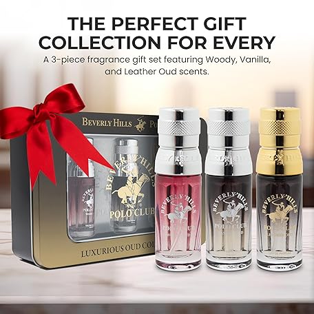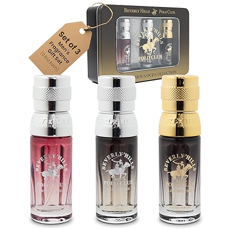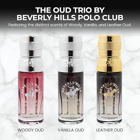 Beverly Hills Polo Club Oud Collection - Set of 3 EDP Men's Fragrance Gift Set - Woody, Vanilla and Leather Oud Scent - Long-Lasting, Travel-Friendly Cologne for Men (0.5oz Each)