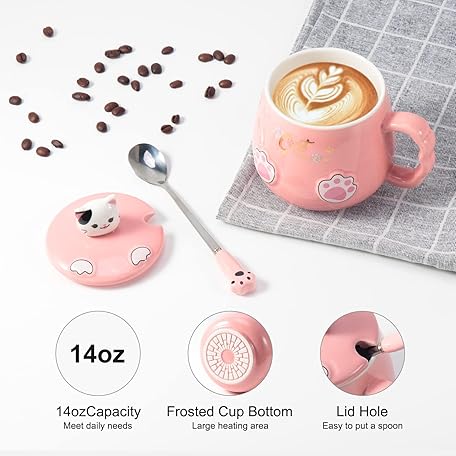 Thông tin sản phẩm Bgbg Cute Cat Mug, Novelty Ceramic Coffee Tea Milk Cup with Lovely Kitty Lid, Kawaii Claw Spoon, Anime Coaster, Novelty Things Birthday Christmas Gift for Cat Lovers Women Her, 14 oz, Pink