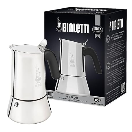 Thông tin sản phẩm Bialetti - New Venus Induction, Stovetop Coffee Maker, Suitable for all Types of Hobs, Stainless Steel, 10 Cups (15.5 Oz), Silver
