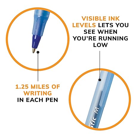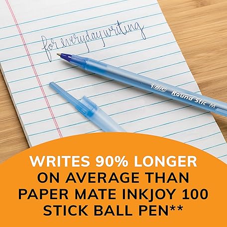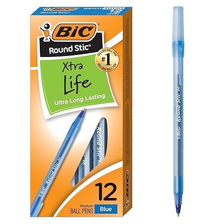 • BIC Round Stic Xtra Life Blue Ballpoint Pens, Medium Point (1.0mm), 12-Count Pack of Bulk Pens, Flexible Round Barrel for Writing Comfort, No. 1 Selling Ballpoint Pens