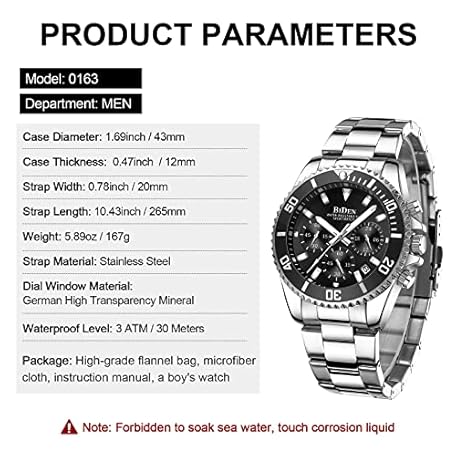 Sản phẩm BIDEN Mens Watches Chronograph Stainless Steel Waterproof Date Analog Quartz Watch Business Wrist Watches for Men đang được bán với giá ưu đãi là $26.1491 tại nước Mỹ.