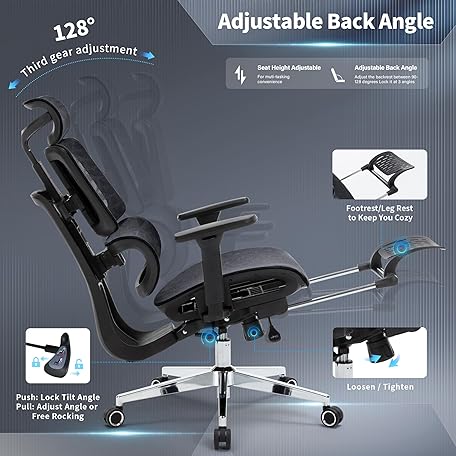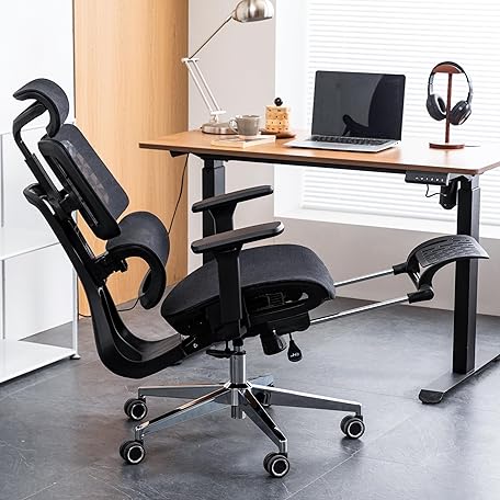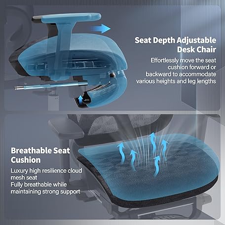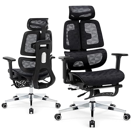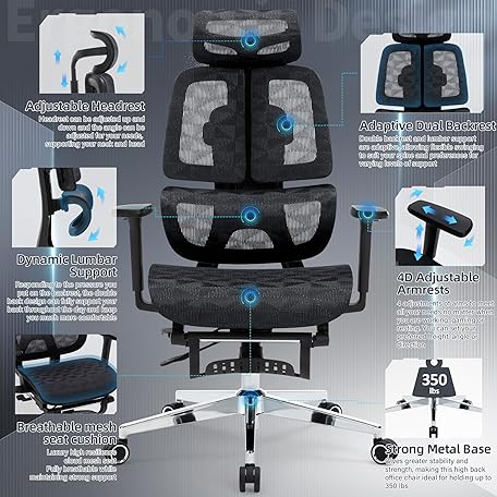 Big and Tall Ergonomic Office Chair with Adjustable Seat Depth&Dual Backrest, 4D Arms, High Back Mesh Desk Chair with Footrest, Metal Base, Multifunctional Computer Executive Chairs for Home Office
