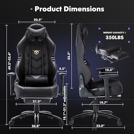 Thông tin sản phẩm Big and Tall Gaming Chair with Footrest 350lbs, Computer Gamer Chair, High Back PC Gaming Chairs with Wide Seat, Lumbar Support, Armrest for Adults-Black
