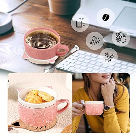 Sản phẩm BigNoseDeer Cute Cat Mug Kawaii Tea Cup Pink Ceramic Coffee Mug with Lid,Tea Cups and Saucers cute Cool Preppy Stuff Cute Gifts cat Gifts for Women Cat Lovers Christmas Gift 10oz đang được bán với giá ưu đãi là $12.7203 tại nước Mỹ.