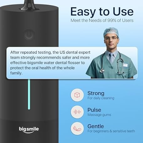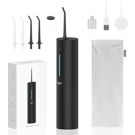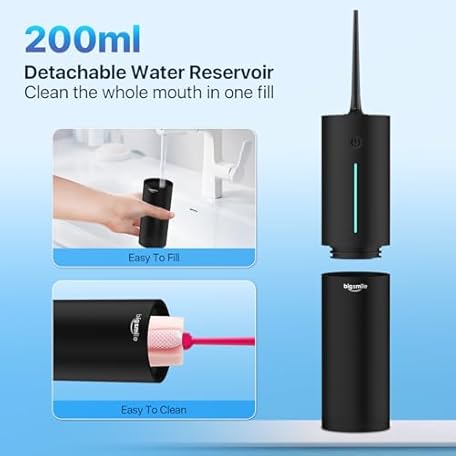 Sản phẩm Bigsmile Black Water Flosser Cordless Portable Dental Irrigator Travel Shower Strong Pick Floss IPX7 200ML Must Have for Kids Braces Bridges (Black đang được bán với giá ưu đãi là $70.5993 tại nước Mỹ.