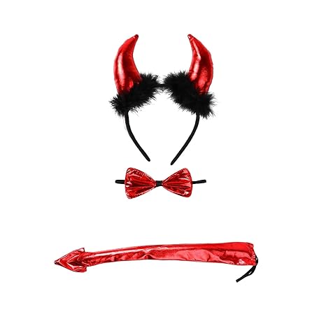 Thông tin sản phẩm BinaryABC Halloween Devil Costume Set,Devil Headbands Bow Ties Tail Set,Halloween Devil Costume Accessory(Black)