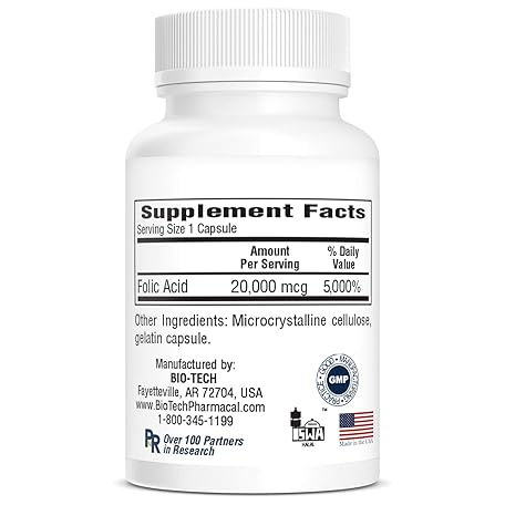 Sản phẩm Bio-Tech Pharmacal Folic Acid (20mg, 100 Count) đang được bán với giá ưu đãi là $19.8816 tại nước Mỹ.