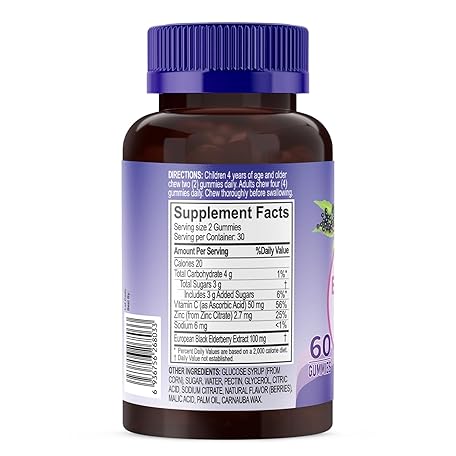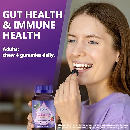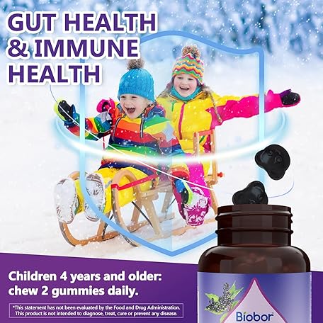 • Biobor Natural Black Elderberry Gummies, Elderberry Fruit Extract with Vitamin C and Zinc, Herbal ElderCraft® Gummies Daily Immune Support for Kids and Adults, GMO Free, Gluten Free, 60 Count