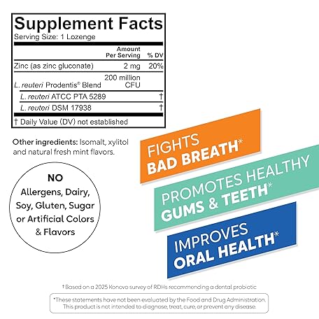 Sản phẩm BioGaia Prodentis Fresh Breath | Oral Probiotics + Zinc | Fights Bad Breath & Halitosis | Boosts Fresh Breath | Promotes Healthy Gums & Teeth | Fresh Mint Flavored Dental Probiotic Lozenge đang được bán với giá ưu đãi là $26.1491 tại nước Mỹ.