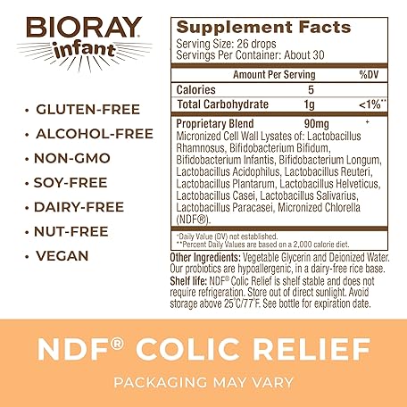 Thông tin sản phẩm BIORAY Infant NDF Colic Relief - 1 fl oz - 11-Strain Probiotic Lysate - Ease Discomfort in The Stomach, GI Tract & Colon - Non-GMO, Vegetarian, Gluten Free - Approx. 30 Servings