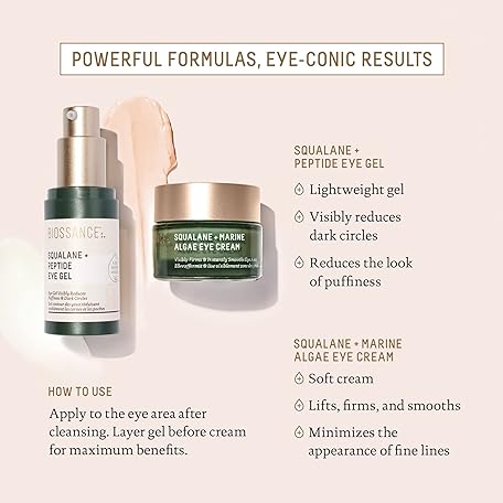 Thông tin sản phẩm BIOSSANCE Squalane and Marine Algae Eye Cream - Anti-Aging Under Eye Cream for Fine Lines, Wrinkles, and Puffiness - Hydrating & Lifting Formula with Hyaluronic Acid and Paracress Extract - 0.5 Ounce