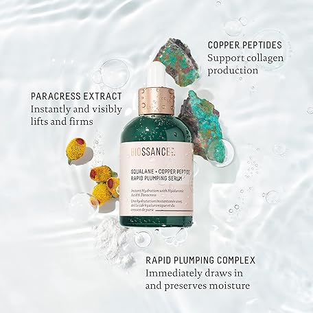 Thông tin sản phẩm Biossance Squalane + Copper Peptide Rapid Plumping Serum - Face Serum for All Skin Types - Visibly Plumping + Firming Skin, Fine Lines + Wrinkles, Vegan Copper Peptides, Hyaluronic Acid