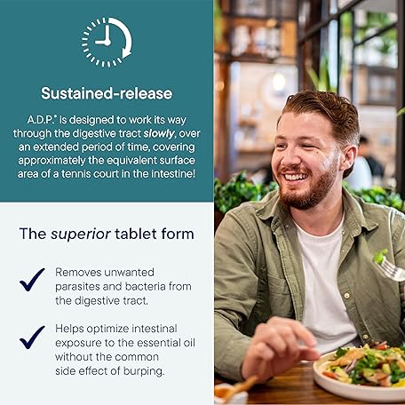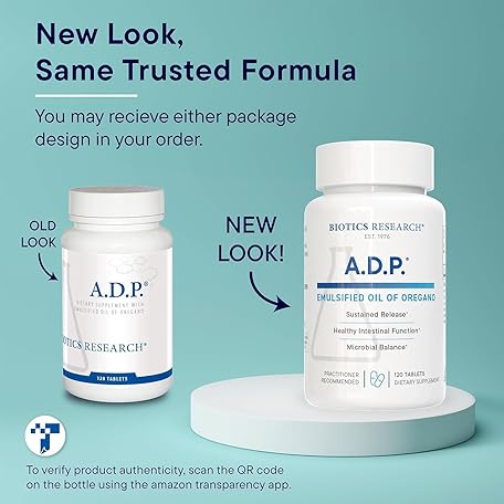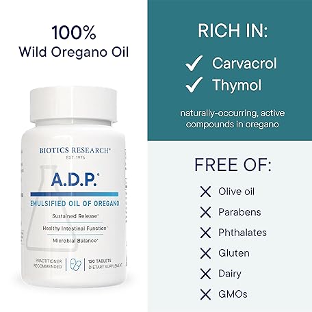 Thông tin sản phẩm Biotics Research A.D.P. Emulsified Oil of Oregano Tablets for GI Health -Sustained Release for High Absorption Contains Carvacrol, Wild Oregano Oil 50mg/S - Patented Formula -Non GMO –120 Tablets