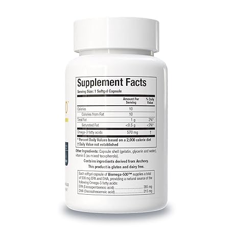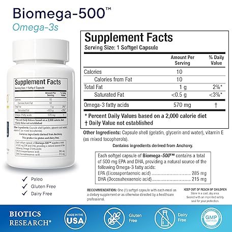 Thông tin sản phẩm Biotics Research Biomega 500 Omega 3 Fish Oil Supplement, Highly Concentrated Fish Oil with EPA/DHA, Omega 3 Fatty acids, Supports Immune and Cardiovascular 90 Softgel Capsules