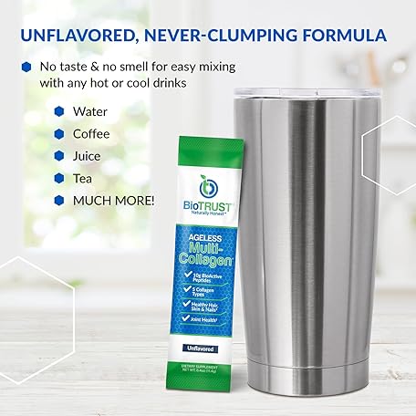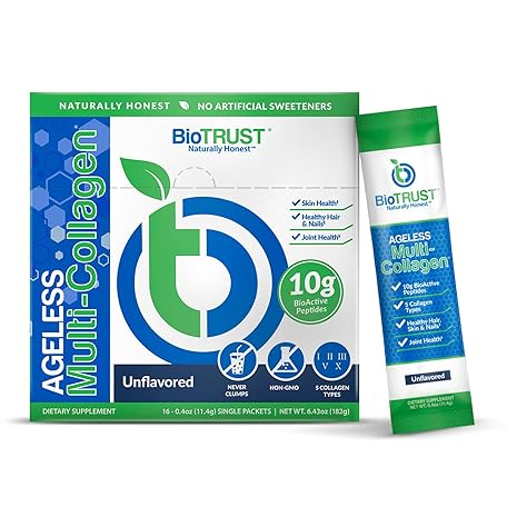 Thông tin sản phẩm BioTrust Ageless Multi Collagen Peptides Powder – Types I, II, III, V, X – Unflavored Collagen Powder for Women & Men – Hydrolyzed Protein– Grass Fed Beef, Fish, Chicken, Eggshell Membrane(16 packets)