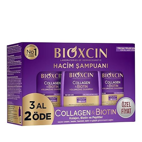 • BIOXCIN Collagen Biotin Shampoo Anti-Hair Loss for All Hair Types Volumizing Herbal Formula 3-Pack 300 ML
