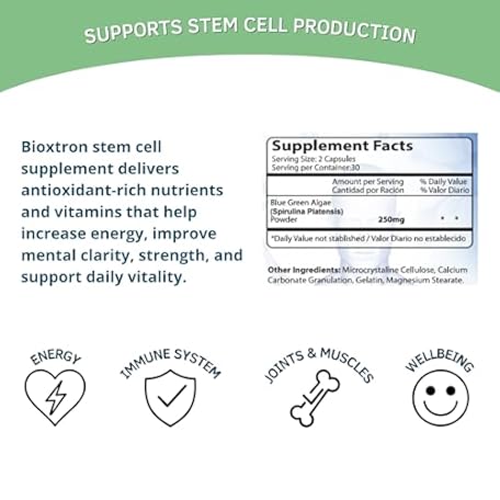 Thông tin sản phẩm Bioxtron Natural Stem Cell Supplement Capsules - Blue Green Algae, Spirulina, Energy Support - 60 Capsules
