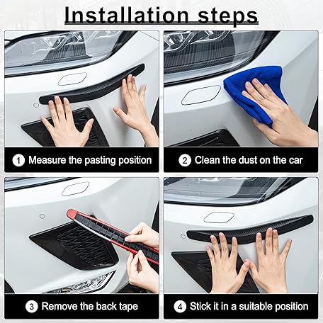 Thông tin sản phẩm BJSIA 4PCS Rear Bumper Car Protector Strip, Front and Back Corner Bumper Strip Anti-Scratch Trim Tape Carbon Fiber Textured, Universal for Cars, SUVs, Trucks 15.9" x 2.05" (Black)