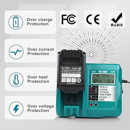 Sản phẩm BL1860 18V 6.0Ah Battery and Charger for Makita,New Version DC18RC Charger with LCD Display Cooling Fan Compatible with Makita LXT Li-ion Battery BL1850 BL1840 BL1830 BL1820 BL1815 đang được bán với giá ưu đãi là $88.2791 tại nước Mỹ.