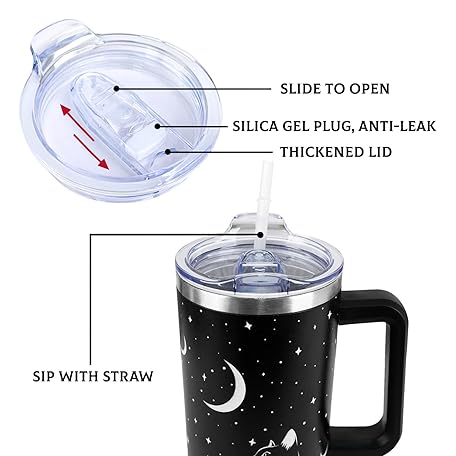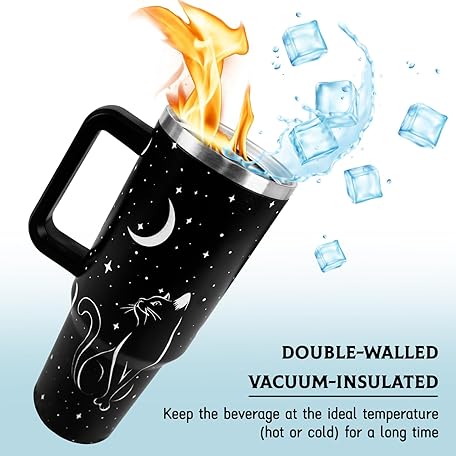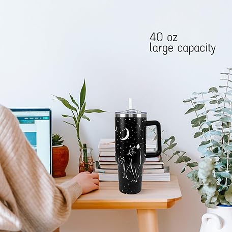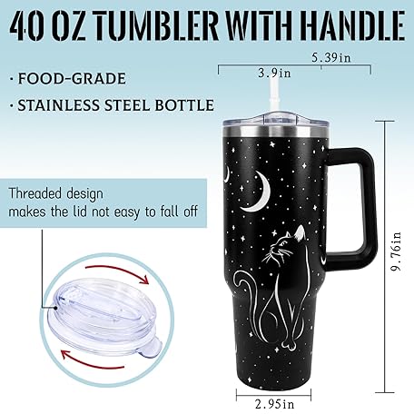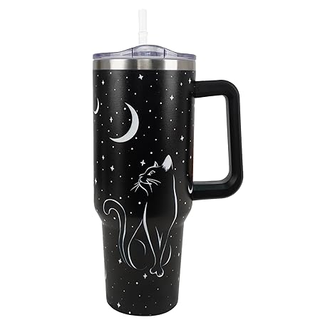 • Black Cat 40 Oz Tumbler - Funny Gifts for Cat Lovers, Witch Goth Halloween Travel Mug, Witchy Themed Gifts for Women - 40 Ounce Cup with Handle