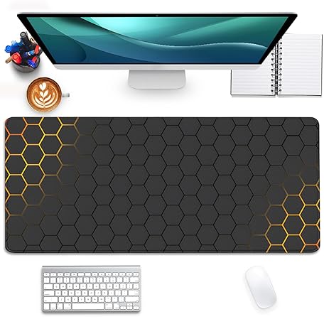 Black Gold Honeycomb Mouse Pad Desk Pad,Extended Gaming Mouse Mat,Stitched Edges Non-Slip Waterproof Rubber Base Mousepad for Office Desk Mat(27.5X11.8 in)