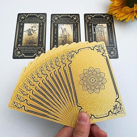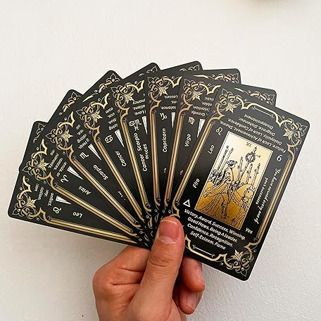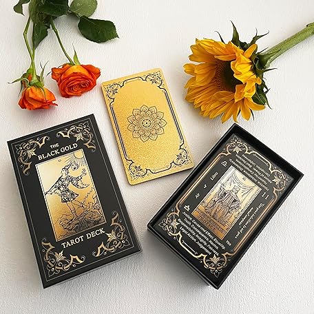 Sản phẩm Black Gold Tarot Cards Set, Beginner's Tarot Cards with Meanings, Gold Gilded Edges Deck with Guide Book đang được bán với giá ưu đãi là $11.2815 tại nước Mỹ.
