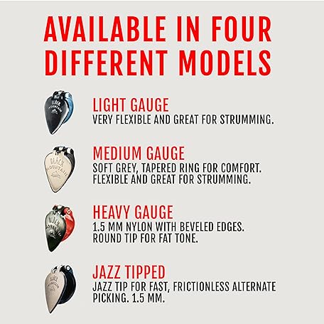 Thông tin sản phẩm Black Mountain Variety Pack of Spring Loaded Thumb Picks for Acoustic Guitar, Electric Guitar, Ukulele, Banjo, Dobro, Mountain Dulcimer, Mandolin, and More. Universal Fit for Medium to XL Thumbs