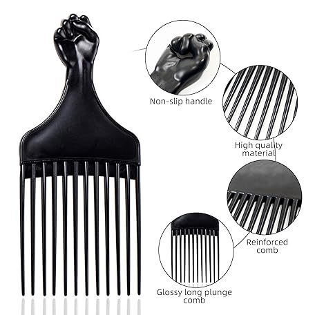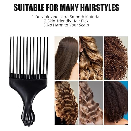 Thông tin sản phẩm Black Soft 'N Style Hair Pick for Styling Women's and Men's Curly Hair, Plastic Detangler for Wigs, Braids, and Afros