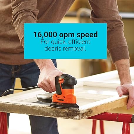 Thông tin sản phẩm BLACK+DECKER Detail Sander, 1.2 Amp, 16,000 OPM, Compact Design, 3-Position Grip for Comfort, Includes Dust Collector, Corded (BDEMS600)